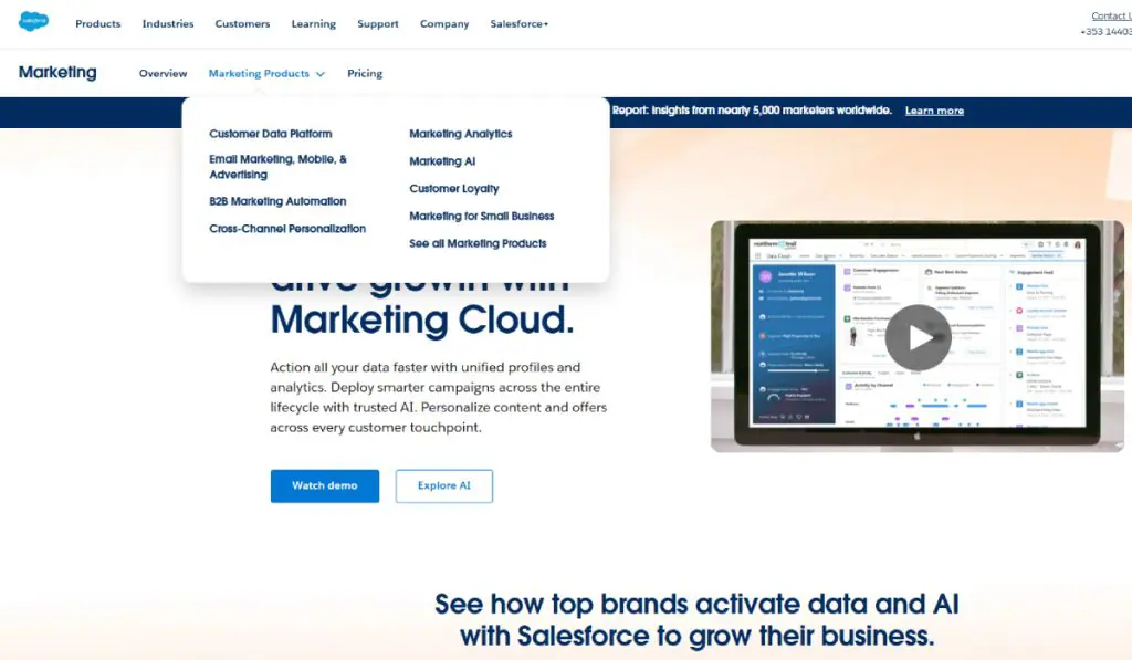 The platform’s integration with Salesforce CRM ensures a unified view of customer data, enabling seamless workflows and more targeted marketing efforts. Einstein AI integration further enhances its capabilities, offering predictive analytics and lead scoring to help marketers anticipate customer needs and optimize campaigns. As noted by a marketing director at a global retail company, “Journey Builder has transformed how we engage with our customers. We’ve seen a 20% increase in customer engagement over six months by automating personalized email campaigns.“